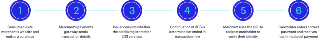 2. The merchant’s payments gateway automatically sends transaction details and a 3D Secure verification request to the cardholder’s issuing bank.