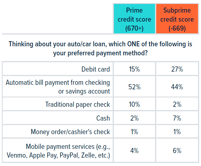 Prime vs. subprime borrowers: Exploring payment preferences