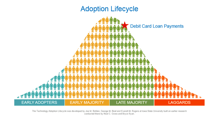 Debit card payment processing for loans reaches the “late majority” stage
