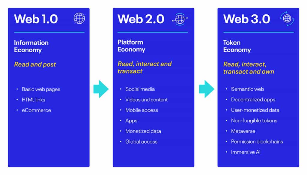 The term “token economy” comes from the ability to tokenize digital assets, but also tokenize sensitive data. For merchants, this means removing highly sensitive customer data from their systems, by receiving transactions in the form of public and private “tokenized” keys and lowering the chances of fraud. This marks a shift away from a payments ecosystem largely based on the “platform economy” or Web 2.0, owned and managed by central banks and payment intermediaries. With the emergence of Web 3.0 or the “token economy,” ownership and “trust” are gradually shifting toward users.