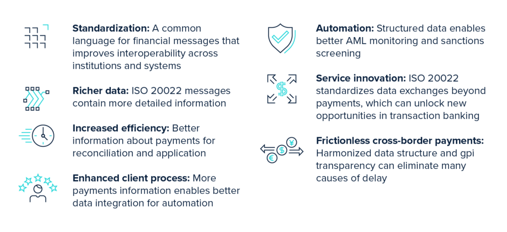 The adoption of ISO 20022 marks new opportunities in the financial services industry by standardizing payment messages across various systems. The standard’s support for richer data formats allows for more detailed and structured information to improve compliance, efficiency, and fraud detection. Financial institutions must understand the benefits, challenges, and strategic approaches necessary for successful migration and use.