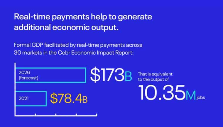 Real-time payments helped generate an additional economic output of $78.4 billion in 2021 across the 30 countries included in the Cebr study. By 2026, this figure is set to rise to $173 billion across the same group of countries, illustrating the scale of the opportunities, both already realized and untapped.