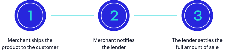 • The lender settles the full amount of sale — minus the lender’s merchant discount rate — in the merchant’s account