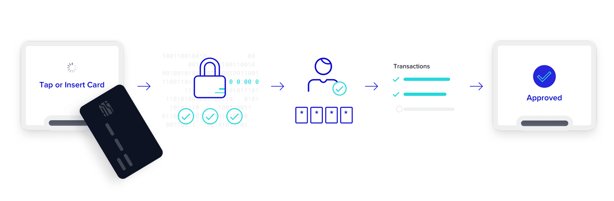 2. The terminal then reads the chip card’s encrypted data and runs a series of cryptographic checks to authenticate that the card hasn’t been tampered with.