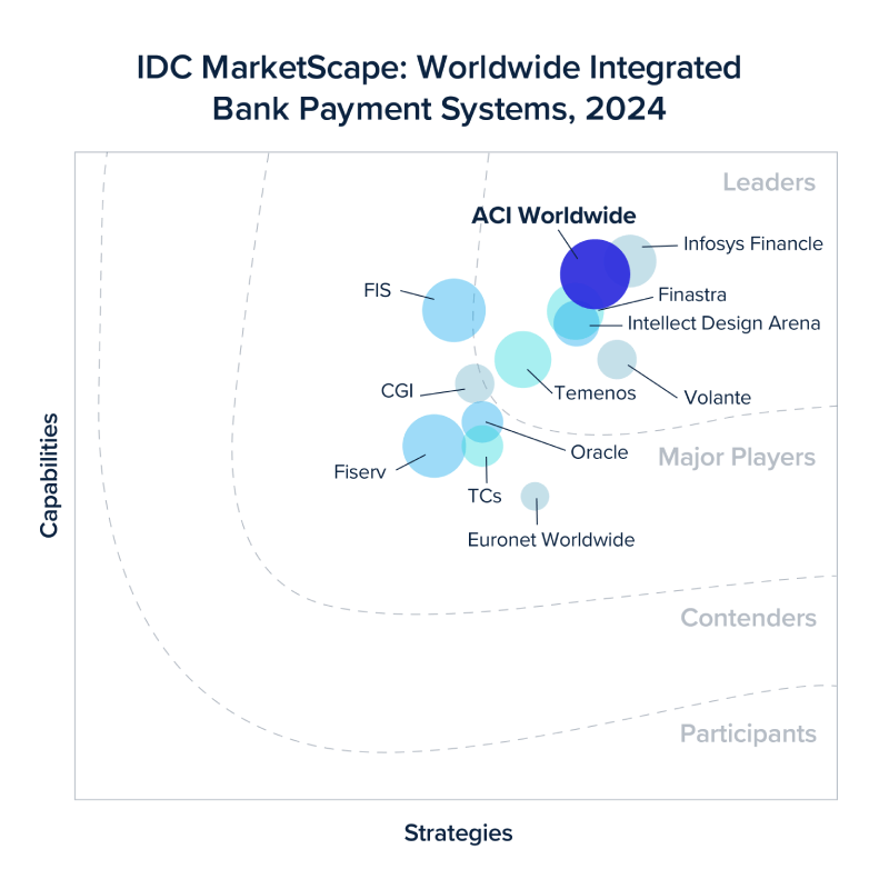ACI Worldwide proudly announces our recognition as a leader in the 2024 IDC MarketScape for Integrated Bank Payment Systems Vendor Assessment. This achievement reflects our dedication to delivering rich and highly resilient payment orchestration services built on a modern platform to support future growth and innovation.