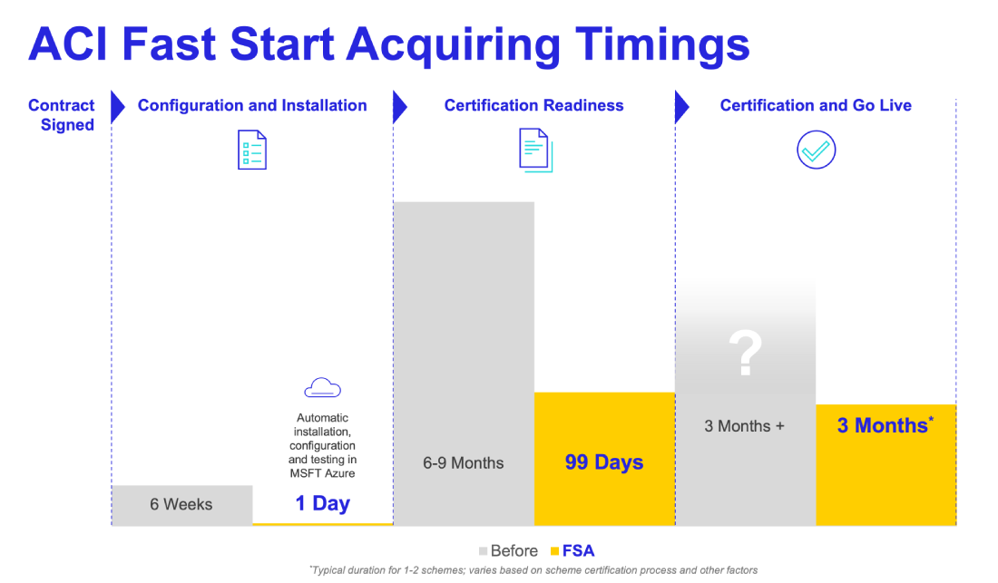 Achieve acquirer and sub-acquirer technical certification 100 days from contract to quickly enable new revenue streams and reduce ongoing implementation costs